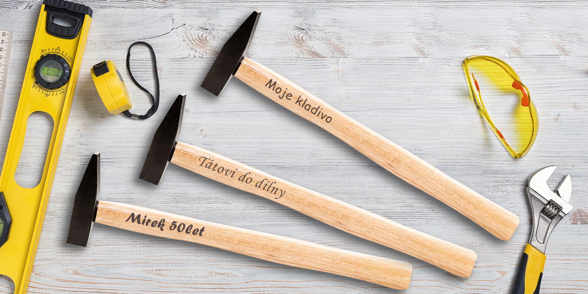 Tohle kladivo potěší každého kutila. Ať už s oblibou maká v dílně, nebo sem tam něco potřebuje opravit v domácnosti, tohle kladivo bude mít vždy rád po ruce – topůrko z lakovaného dřeva totiž bude zdobit text, který pro něj necháte speciálně vygravírovat. Stačí si vybrat z 11 fontů písma a vymyslet text: třeba věnování, jméno či oblíbené motto.