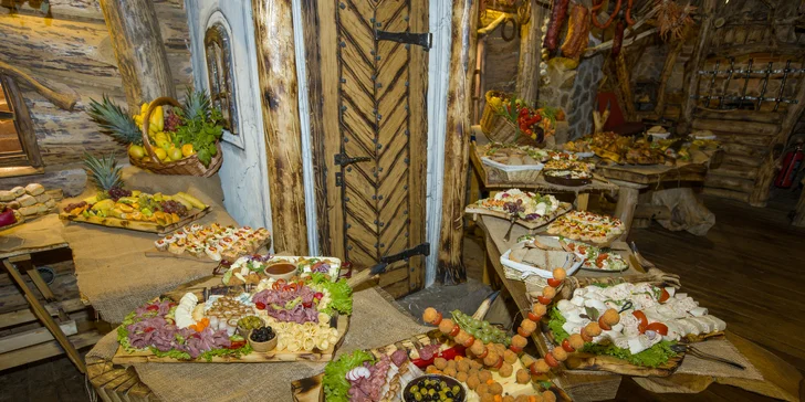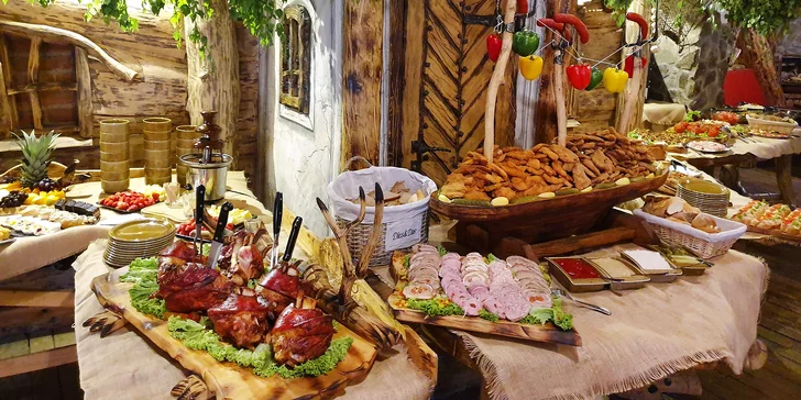 A na čem si pošmáknete? Těšte se například na kuřecí a vepřové řízečky, vepřová žebra, hovězí guláš, bůček, uzené, pikantní křidélka, kuřecí paličky, ale také sýrové mísy, ovoce a zeleninu a spoustu dalších dobrot. To vše v libovolném množství. Nápoje se hradí zvlášť.