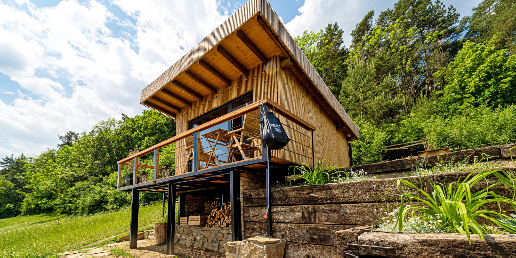 Dřevěná chatka je postavena v ekologickém a minimalistickém stylu, který je maximálně šetrný vůči přírodě a zároveň poskytuje potřebný komfort hostům. Chatka je sice bez moderních výdobytků techniky, ale to vám bohatě vynahradí prostorná masivní postel, ze které můžete pozorovat hvězdnou oblohu. Najdete tu také malou kuchyňku s plynovou dvouplotýnkou, základním nádobím, moka konvičkou a džbánem s pitnou vodou.