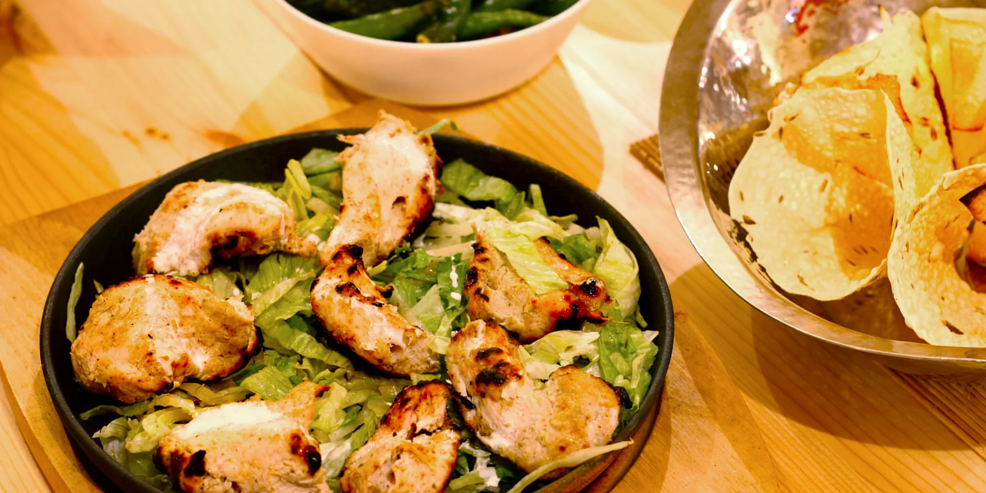 - 200g kuřecí specialita či bezmasé jídlo z jídelního lístku (např. butter chicken, kuřecí curry, kuřecí korma, kuřecí masala, mango chicken, vegetariánské makhani atd.) nebo kuřecí tikka