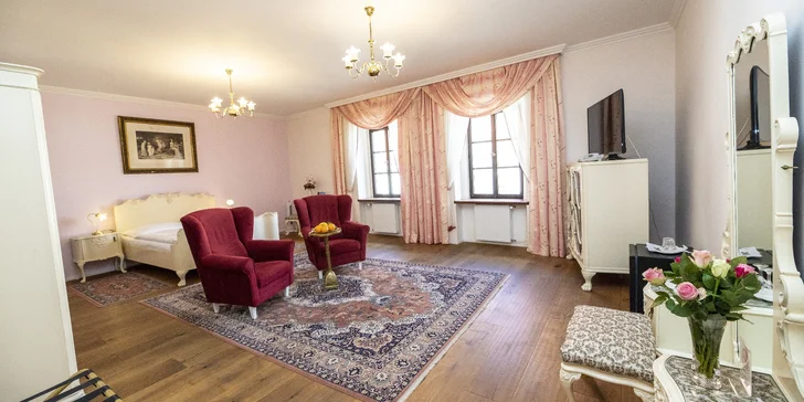 V hotelu se nachází celkem 40 pokojů různého typu. Každý pokoj je jedinečný svým vybavením a dispozicí. Připravený pro vás bude dvoulůžkový pokoj (12–40 m²), k vybavení patří stylový nábytek, pohodlné postele a vlastní koupelna se sprchou či vanou a WC. Samozřejmostí je Wi‑Fi připojení.