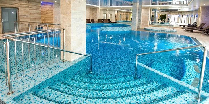 - Relaxační bazén s vodními tryskami, masážemi a divokou řekou