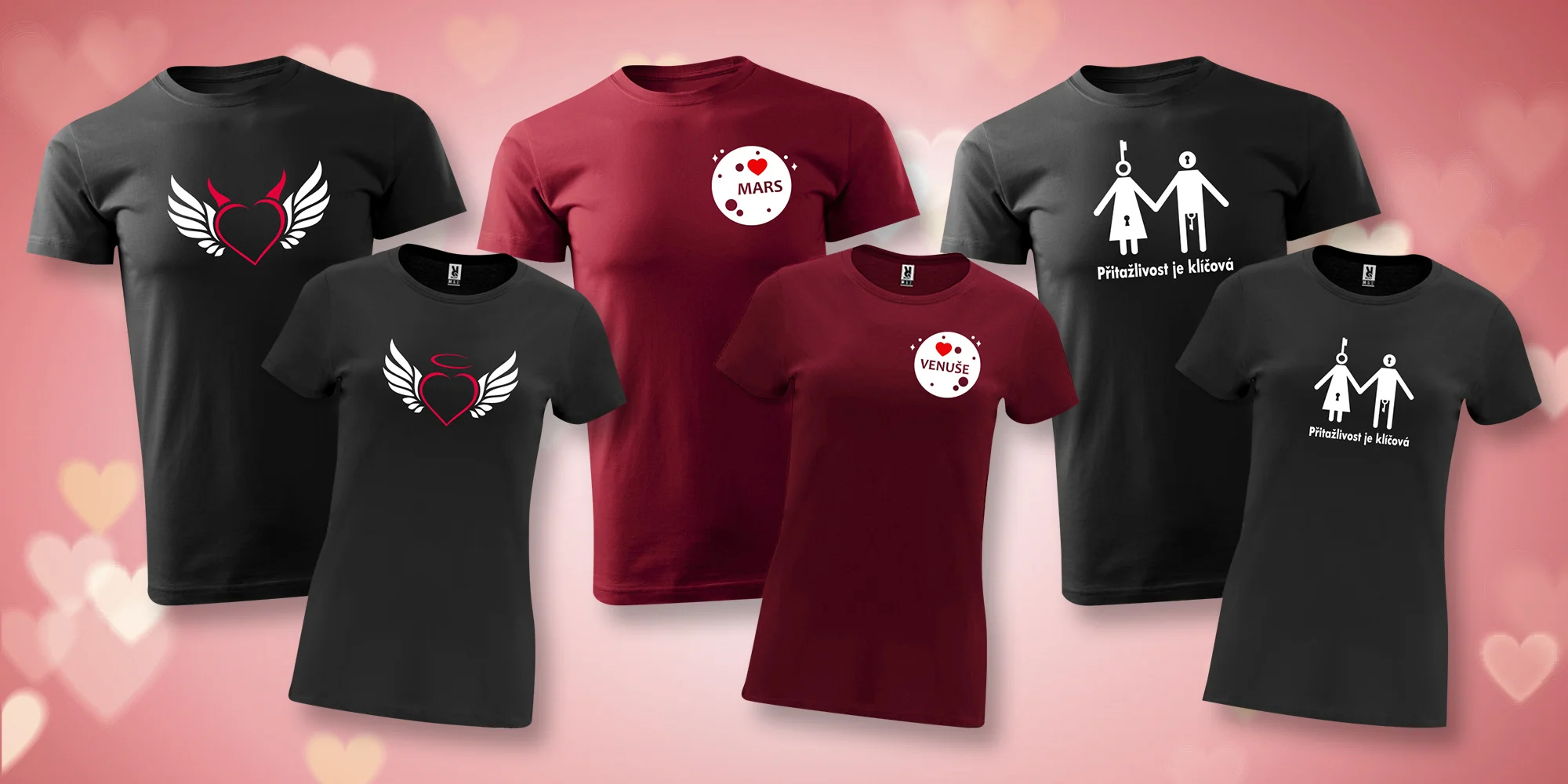 Na těchto se skví nejrůznější zamilované motivy, tím pádem své drahé polovičce snadno sdělíte, že je skvělá partie, nebo že přitažlivost je klíčová. A pokud si pořídíte jedno pro sebe a druhé pro něj či pro ni, bude na veřejnosti hned jasné, že vy dva zkrátka patříte k sobě.