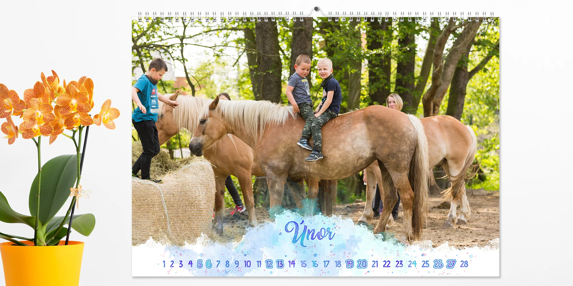 Na výběr jsou stolní i nástěnné kalendáře různých formátů – kromě klasických A3 a A4 třeba i 30 × 14 cm a 21 × 14,8 cm. Vaší zdi budou slušet! Sami si vyberete nejen fotky, ale i začátek (kalendář nemusí začínat 1. lednem). A kalendárium může být i ve slovenštině.