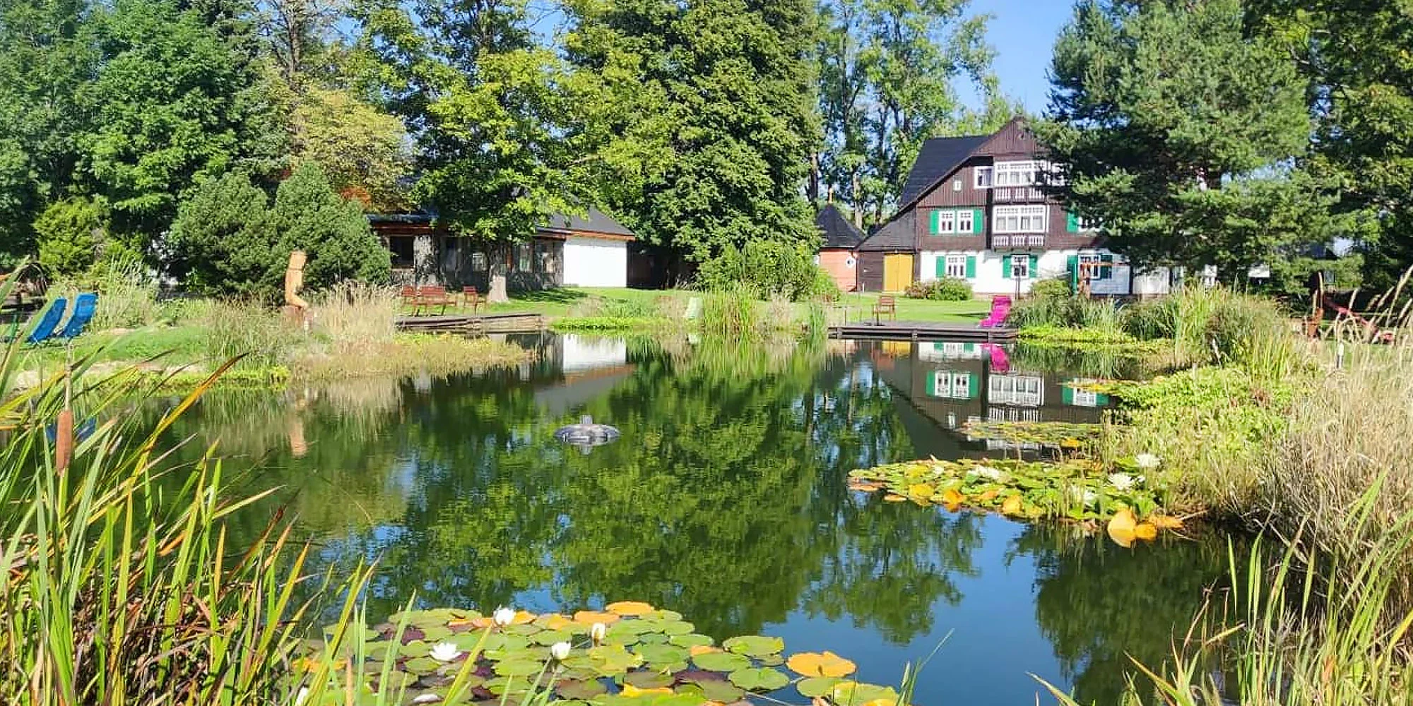 Těšit se můžete na pořádný odpočinek – součástí penzionu je wellness s vířivkou, finskou saunou a krytým bazénem. Osvěžit se (třeba i po sauně) můžete i ve venkovním leknínovém jezírku. V nabídce rovnou najdete varianty s neomezeným vstup do wellness i jezírka. Je tu také velká zahrada s koutkem pro děti, dětským hřištěm, houpačkami a hala na ping-pong. Dále je k dispozici hřiště na nohejbal, volejbal a badminton.
