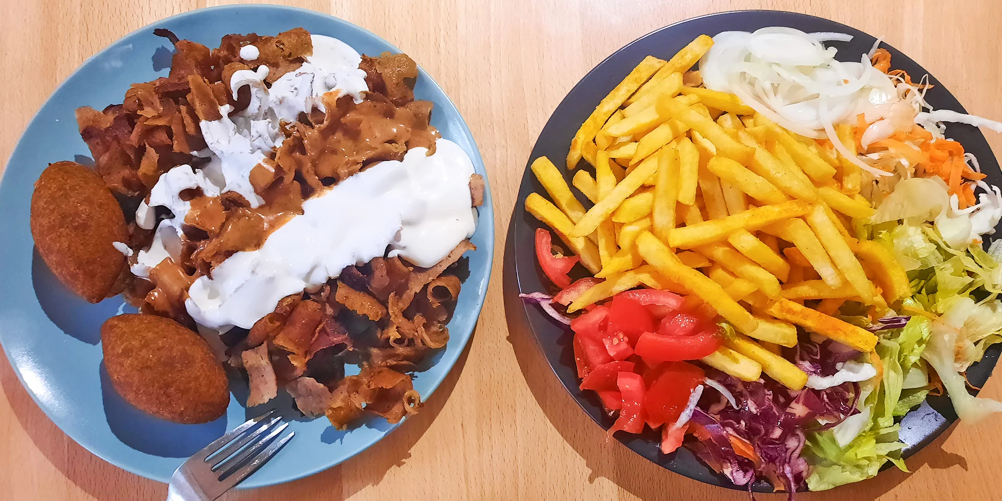 - 2× kebeh (à 80 g) – smažené kuličky z hovězího masa, bulguru a cibule