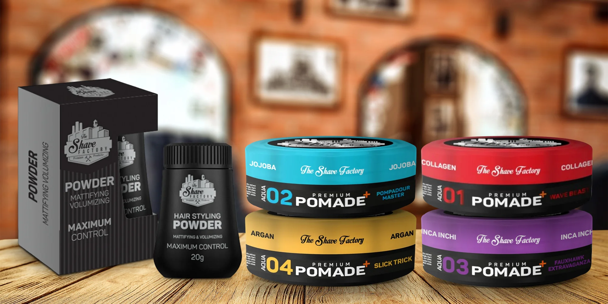 Pudr vlasům dodá extra objem a zároveň je zanechá matné a suché. Pomády jsou v nabídce buď pro lesklý, nebo pro matný vzhled a poradí si jak s krátkými, tak s delšími vlasy. Obsahují tea tree, shea butter či přírodní oleje, například arganový, jojobový nebo Inca Inchi. Tak ať vám to sluší!