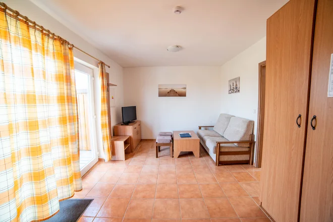 - Obytná místnost s kuchyňským koutem vybaveným základním vybavením