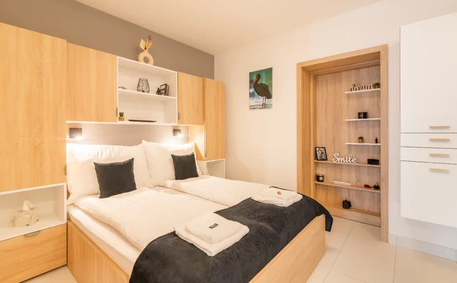 Pobyt si užijete ve vybaveném moderním apartmánu, kam se pohodlně vejdou 2–4 osoby. Vstup do apartmánů je přímo z ulice. Po otevření dveří vkročíte do světlého a velkého obývacího pokoje s otevřeným prostorem a vybavenou kuchyní.