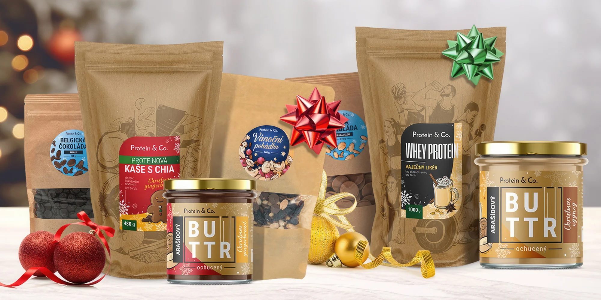 Všechny tyhle dobroty včetně proteinu nebo arašídového krému pro vás připravila firma Protein&Co. Radost jimi můžete udělat sami sobě, ale i svým nejbližším. Ať už pod vánoční jedli, k narozeninám, nebo jen tak pro radost.