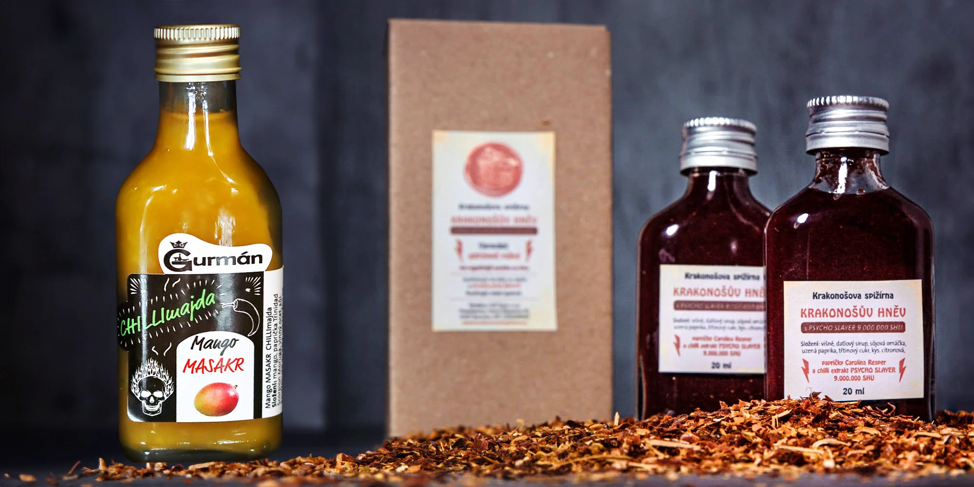 Změřte své síly s nejpálivější omáčkou na českém trhu a vyzkoušejte „Krakonošův hněv“! Jak si tuhle pecku užít? Dejte si ji k masu nebo třeba grilované zelenině, vytuňte s ní svůj oblíbený dip anebo se postavte výzvě a zkuste ji jen tak samotnou. Základ je višňový s nejpálivější papričkou na světě – Carolina Reaper, o doladění se pak postaral chilli extrakt Psycho Slayer 9 Million SHU, který je nejpálivějším produktem na světě.