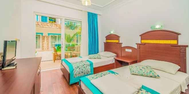 - standardní dvoulůžkové pokoje s možností až 2 přistýlek (palanda) jsou vybaveny vlastním příslušenstvím (koupelna/sprcha, vysoušeč vlasů, WC), klimatizací, SAT/TV, telefonem, ledničkou a balkonem nebo terasou, trezor (za poplatek, cca 2 €/den)
