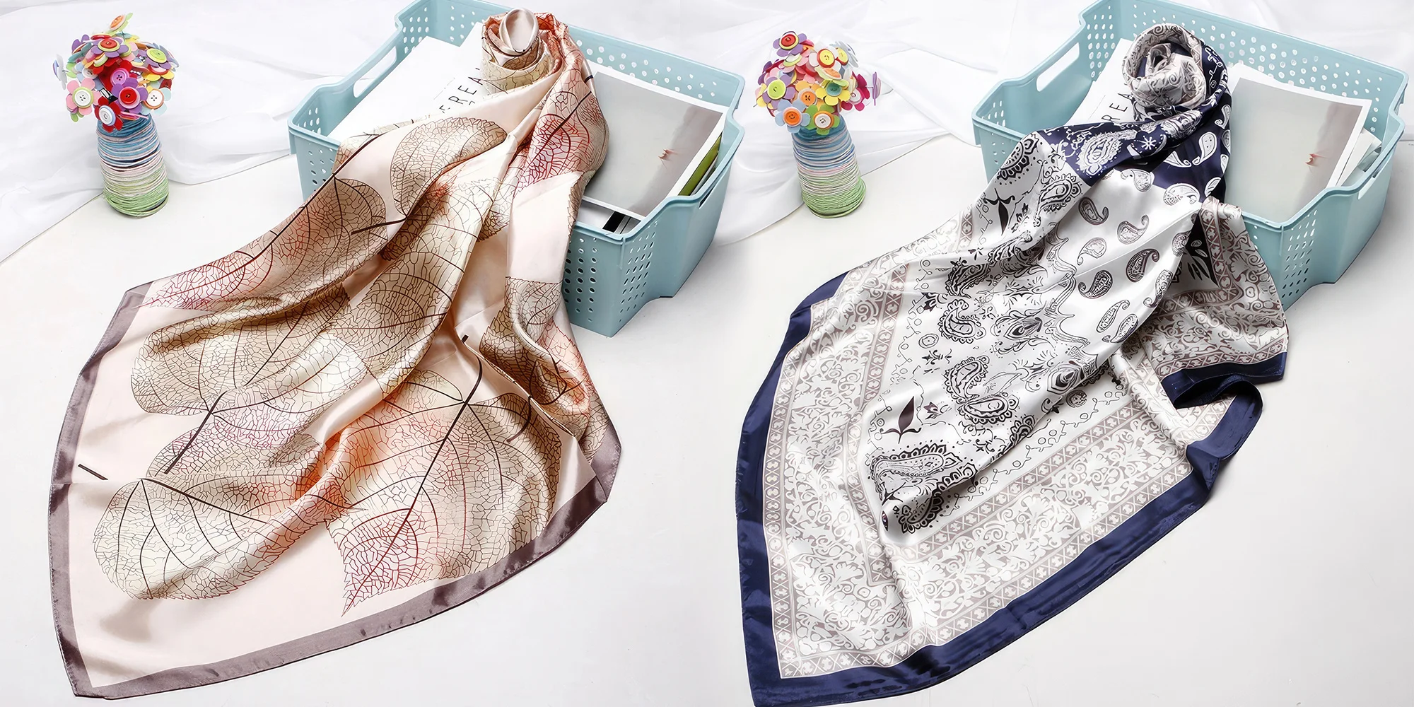 Pořiďte si klasický saténový šátek, který využijete na mnoho způsobů a který vašemu outfitu dodá ten správný šmrnc. Uvažte si ho na krk, ozdobte jím kabelku, použijte ho jako stuhu do vlasů nebo jako poznávací znamení při rande naslepo – vždy zazáříte.