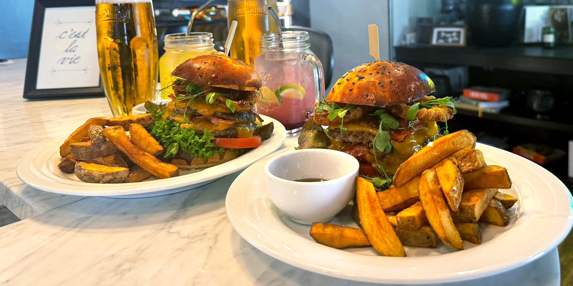 A co vás čeká dobrého? Velký hlad zaženete cheeseburgerem s pořádnou porcí masa, čedaru, zeleniny i cibulových kroužků. Nebudou chybět ani hranolky s omáčkou. V ceně nabídky najdete i vychlazenou plzničku nebo domácí limonádu s příchutí maliny či manga. Z menu se nasytí dvě osoby.