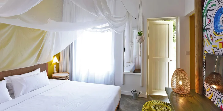 Zabydlíte se v pokoji Comfort s klimatizací, TV, Wi‑Fi a setem pro přípravu čaje a kávy i minibarem. Každý pokoj má vlastní koupelnu a ke všem patří balkon nebo terasa s výhledem do zahrady. Nachystaný tu pro vás bude také plážový set, který obsahuje plážový koš, chladicí box, proutěnou podložku a plážové ručníky, za ty se vybírá depozit.