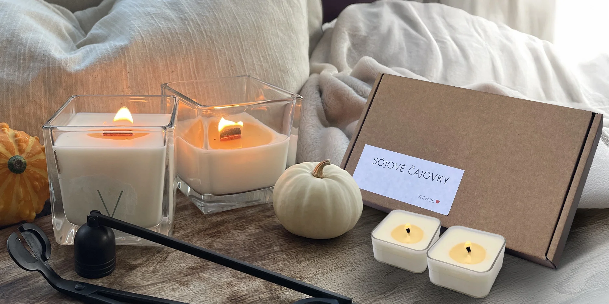 Provoňte svůj domov sójovými svíčkami Vunnie a užijte si okamžiky pohody po zapálení dřevěného knotu, který při hoření připomíná praskající krb. Svíčky se vyrábí ručně v České republice a plápolat vám budou až 55 hodin. Usedněte po dlouhém dni na pohovku a nechte kolem sebe rozvinout vůně, které vás jako mávnutím kouzelného proutku přenesou do Abu Dhabi, Říma, Palerma, horského srubu či dob adventu.