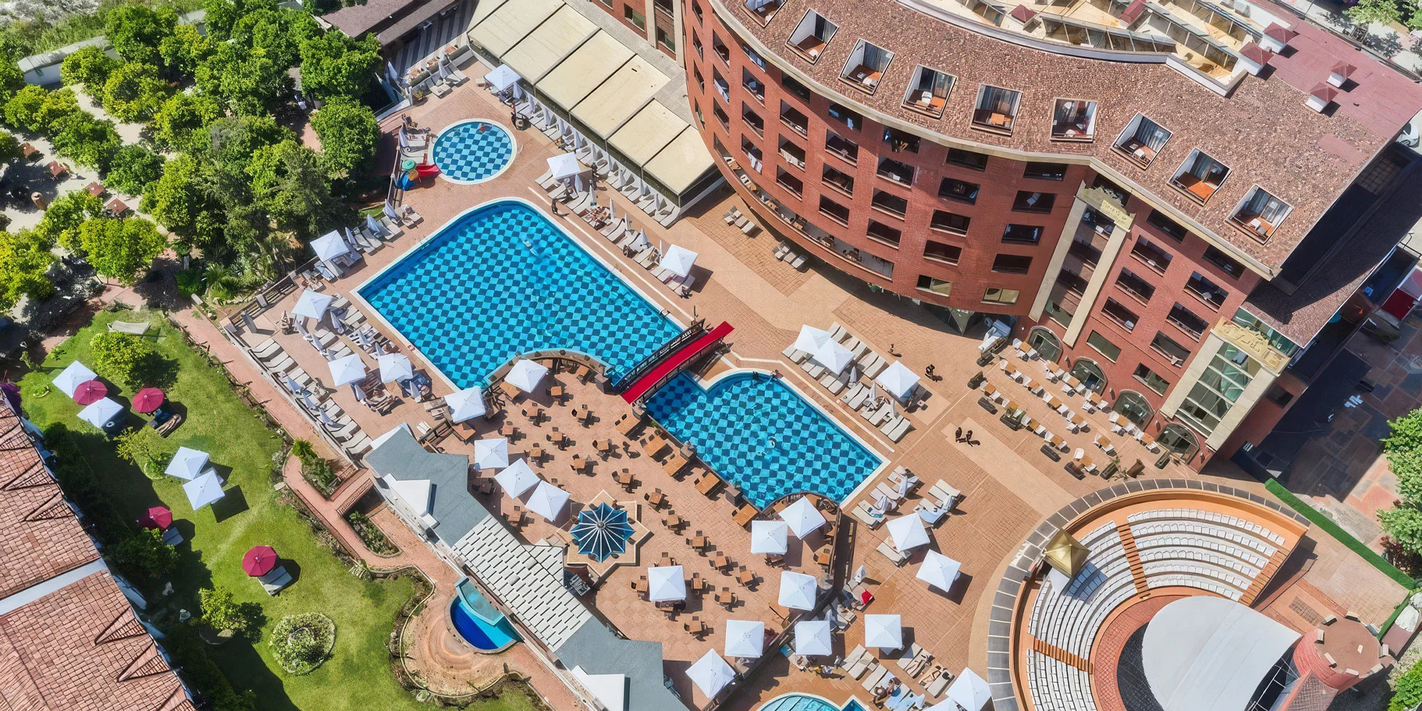 Dovolená bez moře a slunění je jako kino bez popkornu. Není to ono. Nemějte však obavy, obojího si tu užijete dosyta. Součástí hotelu je hlavní venkovní bazén, bazén se třemi skluzavkami pro děti i bazén krytý. Lenošit pak můžete pod slunečníkem na lehátku, jsou bez příplatku. Samozřejmostí je také koupání v moři, písčito-oblázkovou pláž najdete 800 m od hotelu.