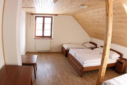 V penzionu se nachází 10 dvou až čtyřlůžkových pokojů, každý má vlastní koupelnu (sprcha nebo vana), WC, LCD TV, vestavěná skříň.