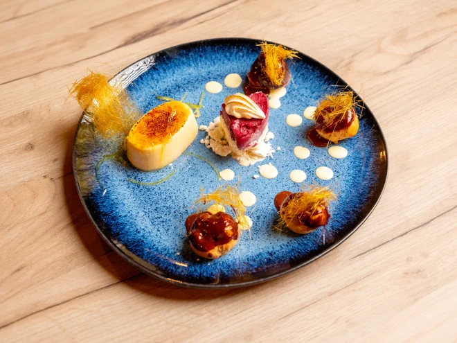 - Profiteroles s vanilkovým krémem a čokoládovou omáčkou se slaným karamelem