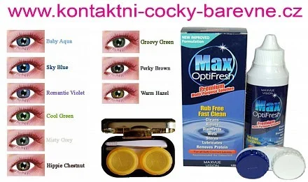 Roztok MAX OptiFresh - na všechny typy měkkých kontaktních čoček. Firma MaxVue Vision, jej vyvíjela především pro barevné čočky. Víceúčelový roztok MAX OptiFresh, který hydratuje, uchovává, oplachuje, čistí, odstraňuje proteiny a lubrikuje kontaktní čočky díky svému složení, je v balíčku ve velikosti 120 ml a s náhradním vnitřním pouzdérkem.