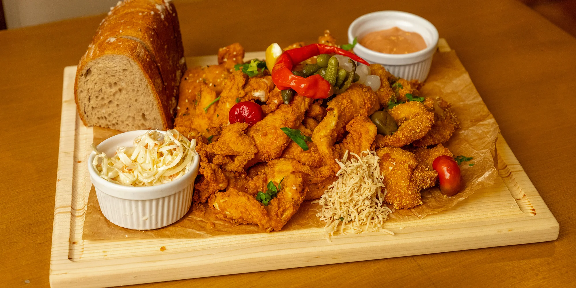 Zastavte se v příjemném prostředí Třebovického mlýna na pořádnou baštu. Naservírují vám tu tři druhy řízků o váze 500 g nebo 1 kg. Těšte se na kuřecí řízečky v kukuřičné mouce, řízky z vepřové kotlety v cornflakes a řízky z vepřové panenky v sezamové strouhance. Co se k nim bude podávat? Přikousnete chleba, okurky, cibulky a kozí rohy. A aby to nebylo málo, můžete namáčet v BBQ omáčce a domácí tatarce.