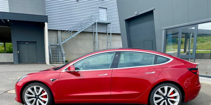 60 min. jako spolujezdec v Tesle 3 Performance (červená)