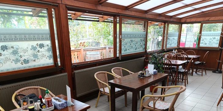 Jako příloha se podávají hranolky a grilovaná zelenina, co si vyberete k pití, už je jen na vás. Ovšem vězte, že tu mají na čepu krásných 6 druhů piv, mezi kterými se vyjímá i řízný Radegast Ratar, Zlatého Bažanta, Heineken nebo třeba Svijany. Poseďte uvnitř v pivnici nebo na zahrádce, která se v létě těší stínu slunečníků a v chladnějším období je vyhřívaná.