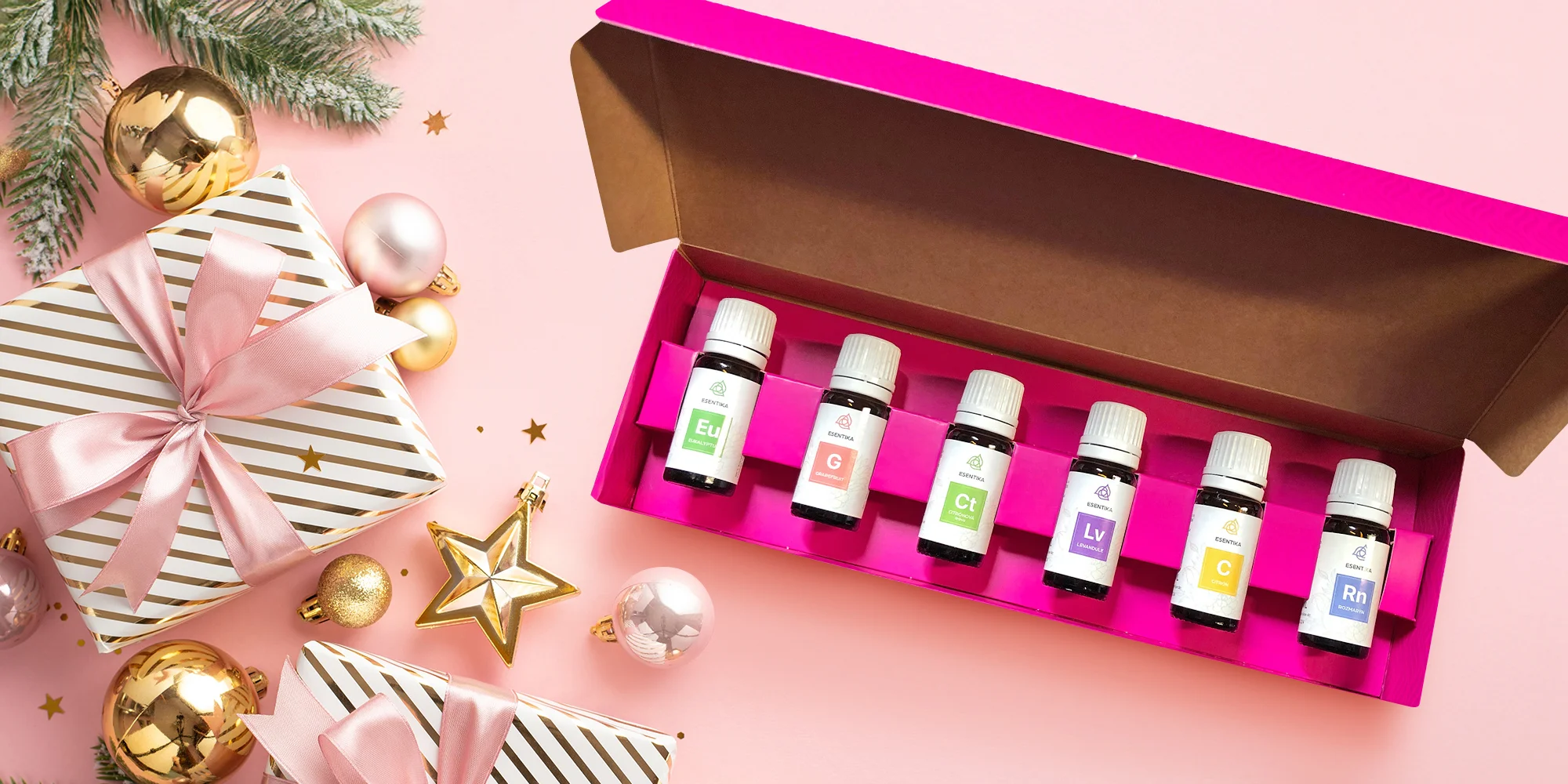 Vybírat můžete z široké škály olejů z malé rodinné firmy Esentika, kde je vyrábějí s láskou, poctivostí a úctou k přírodě. Oleje pořídíte v lahvičkách o objemu 10 ml, a to buď jednotlivě, nebo můžete zakoupit dárkový balíček šesti sladěných druhů – ty vám zajistí dobrou náladu, navodí pocit uvolnění nebo zlepší imunitu.