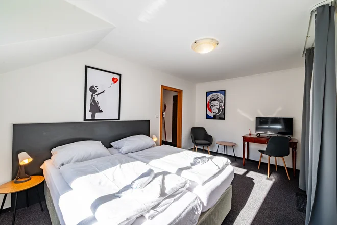 Připraven pro vás bude klasický dvoulůžkový pokoj o velikosti 23 až 26 m2 s pohodlnou manželskou postelí. K základnímu vybavení patří satelitní TV a Wi‑Fi připojení zdarma. V koupelně najdete sprchu nebo vanu, kosmetické zrcátko, fén a samozřejmě WC. K dispozici budete mít také rychlovarnou konvici s výběrem čajů a kávovar Nespresso na kapsle.