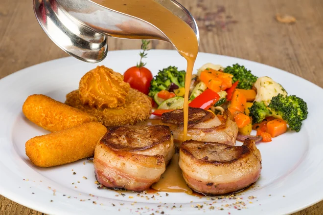 - 4chodové večerní menu včetně salátového bufetu (18:30–20:00)