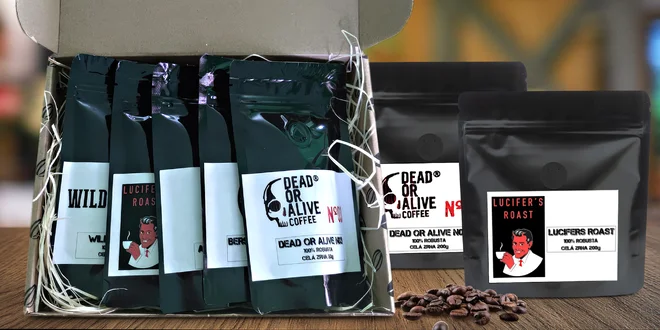 Hladinku kofeinu můžete doplnit zrnky inspirovanými Divokým západem nebo pekelným Luciferem. A pokud zažíváte pomalé ráno definované slovem „pondělí“, připravte si espresso ze zrnkovky Dead or Alive, jež patří mezi nejsilnější kávy na světě. Pořídit můžete také zrnka Darkest Power kombinující působivé množství kofeinu se sladkostí čokolády nebo oříškovočokoládová zrnka Guggenheimer Coffee.