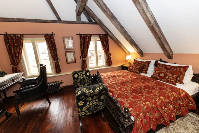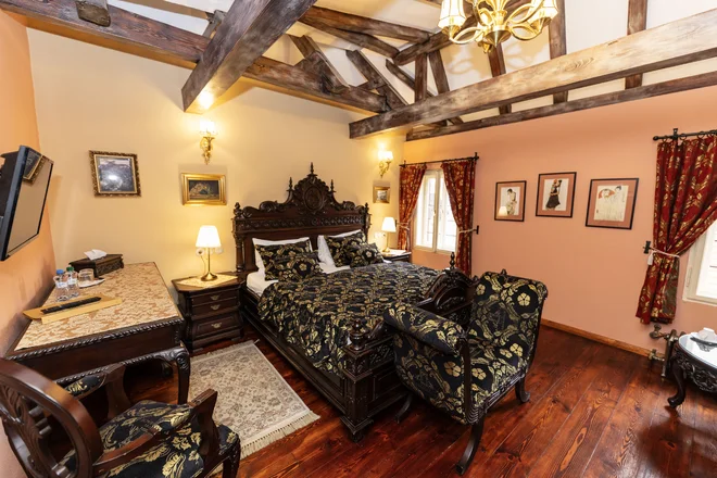 Račte se zabydlet v pokojích typu Superior King nebo Deluxe King (dle vybrané varianty). Všechny jsou do nejmenších detailů vybavené historizujícím nábytkem, v mramorových koupelnách většiny z nich je menší či větší vana (sprchový kout je v pokoji č. 301) a dostatek pohodlí vám poskytnou postele velikosti king size.