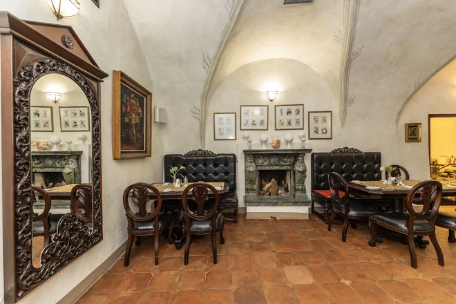 V přízemí hotelu se nachází stylová restaurace se zdobeným krbem a dřevěným stropem s řezbami: budete se cítit jako v galerii renesančních mistrů. V balíčku máte zahrnuté snídaně, které se podávají formou bufetu. Restaurace je k dispozici pouze hotelovým hostům pro snídaně.