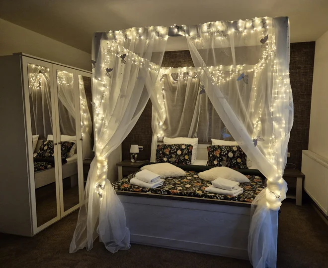 Pak je tu ale ještě jedna možnost ubytování, která dozajista nadchne hlavně zamilované páry. Připraví vám nově zrekonstruovaný pokoj s romantickou výzdobou. Svíčky, kvítí, kosmetický balíček, čokoláda, sekt – to všechno vám určitě zpříjemní společné chvíle.Vybrat si můžete i pobyt v bungalovu, který je postavený samostatně v zahradě a má i vlastní vjezd a parkování. Vybavený je ovšem stejně luxusně jako ty nejluxusnější pokoje, tedy včetně privátní sauny a vířivky. Obojí je tu jen a jen pro vás.