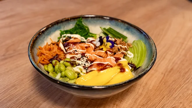 - poke bowl – kuřecí, avokádo, losos nebo krevety