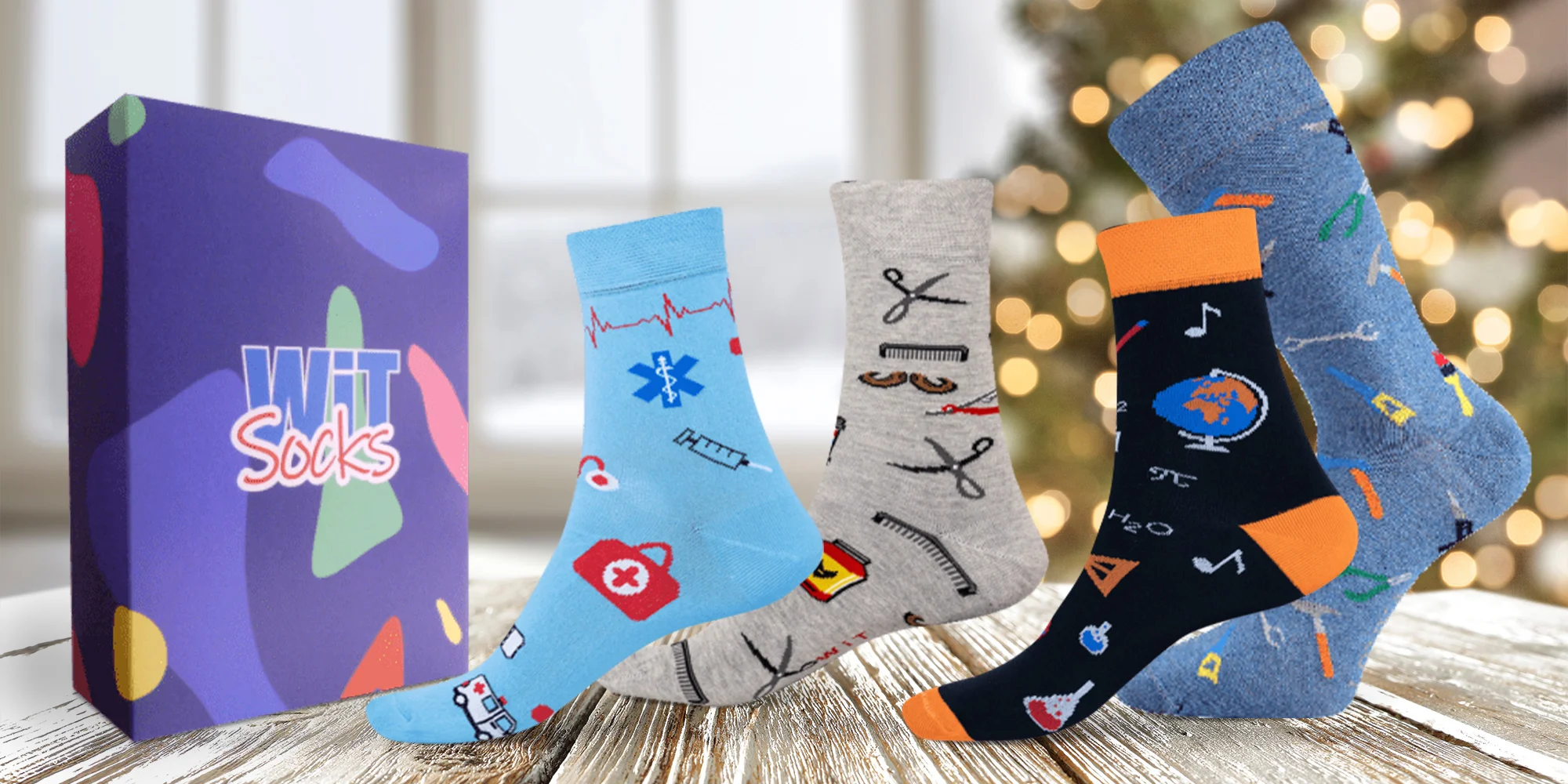 Pořiďte si parádní ponožky, se kterými vám všechno půjde raz dva, nebo udělejte radost někomu z blízkých. V dárkové krabičce se budou ukrývat tři páry ponožek, které jsou z 80 % z bavlny. Ponožky jsou vyráběné v ČR a zdobí je motivy povolání: v nabídce jsou zdravotnické, hudební, policejní verze nebo třeba varianta s motivem hasičů.