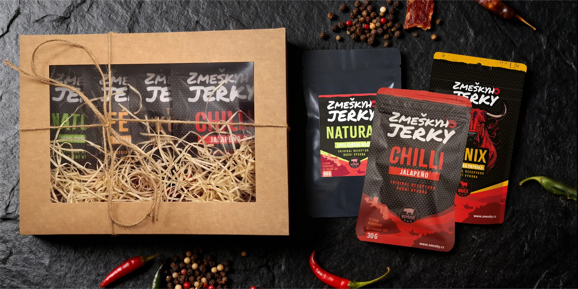 Objevte svět pravého sušeného masa se Zmeškyho jerky! Tuhle českou masovou pochoutku vyrábí ručně a s láskou a používají pouze pečlivě vybrané suroviny od českých dodavatelů. Tak vzniká výtečné jerky, které si zamilujte jako výživnou svačinku na výlet, do práce nebo třeba jen večer k filmu.