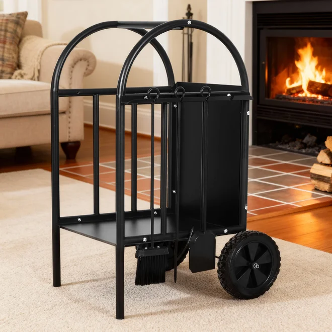 V nabídce najdete rovněž variantu s krbovým nářadím, konkrétně lopatkou, smetáčkem a pohrabáčem. Tedy s pomocníky nezbytnými pro údržbu krbu i jeho okolí. Pevné dno stojanu navíc zachytí případné nečistoty a piliny, které by se mohly ze dřeva vysypat – ušetří vás tak každodenního zametání a úklidu.