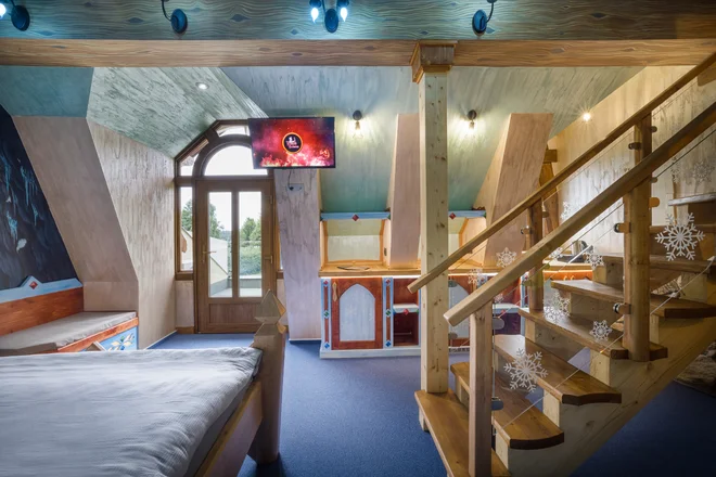 Abyste se měli opravdu jako v pohádce, ubytujete se tentokrát v nově vybudovaných exkluzivních VIP apartmánech. Spojují v sobě luxusní vybavení a maximální komfort s hravým designem, který si zamiluje celá rodina. Perlou celého apartmánu je velká vířivá vana v koupelně, kam se pohodlně vejdou dva dospělí. Děti se tu v bublinách taky pořádně vydovádí a usnou pak na povel jako utahaná koťata.