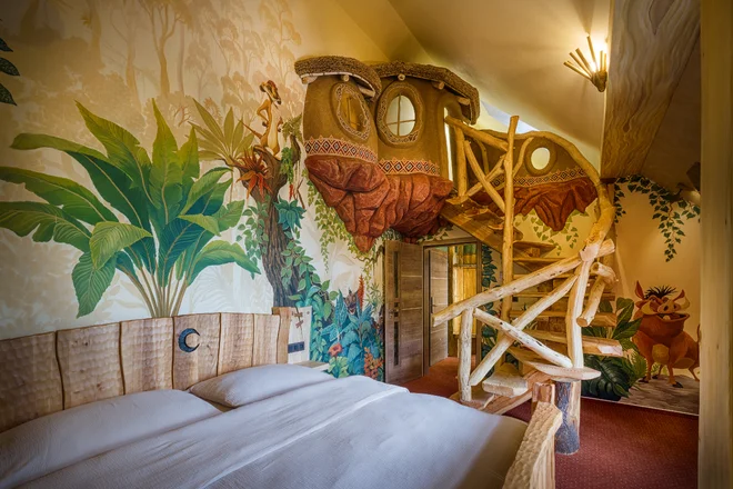Každý z apartmánů je promyšlený do posledního detailu a má svůj osobitý styl. Ručně malované stěny, řemeslně vyráběný nábytek z masivního dřeva, originální dekorace – to vše dohromady tvoří kouzelný svět apartmánů s názvy U Draka, Království a Džungle.