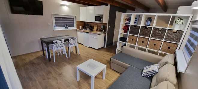 Zavítat sem můžete v zimě i v létě, hausbót disponuje elektrickým podlahovým vytápěním, zima vám v něm tedy určitě nebude. Najdete zde manželskou postel s výhledem na vodní hladinu i obývací část s pohovkou. Nechybí ani moderní koupelna se sprchovým koutem a toaletou či plně vybavený kuchyňský kout, kde si připravíte něco chutného na zub.