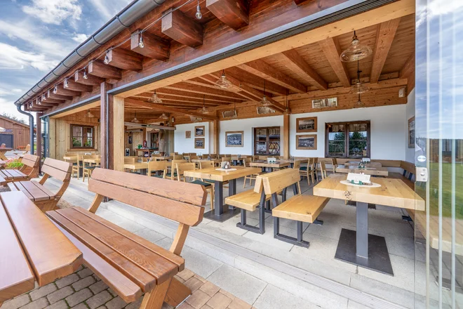 Neváhejte sem ale zajít třeba i na oběd, kdy je na výběr bufet vždy s minimálně 12 hlavními jídly, které doplňují poctivé polévky. Obzvláště hovězí vývar je zde vyhlášený! Večer restaurace nabízí výběr z menu. V nabídce je i pestrá škála vín, točená plzeň nebo lokální pramenitá voda Ranklovka. Se skvělým jídlem neváhejte posedět na čerstvém šumavském vzduchu na terase nebo na dřevěném lehátku či na dece na pečlivě upraveném trávníku.