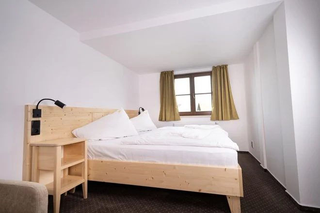 Nabízí tu ubytování v útulných pokojích, které jsou zařízené moderním stylu, který však nezapomíná na typickou šumavskou atmosféru. V každém pokoji je nábytek z masivního dřeva, zelené doplňky nebo třeba obrazy ze zdejšího kraje. Nechybí koupelna se sprchou a toaletou, televize a Wi‑Fi připojení ani lednička. V nabídce jsou menší pokoje pro páry, střední s možností jedné přistýlky nebo velký pokoj s obývacím koutem a možností dalších dvou přistýlek.
