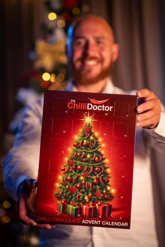 Kalendář má na svědomí česká firma Chilli Doctor, která předepisuje pikantnosti par excellence. Uvnitř se skrývá 8 druhů čokolád s různými chilli papričkami od mírných až po tu nejchilliovější, tedy Carolina Reaper (tu by možná začátečníci radši měli vynechat). Ochutnáte čokoládu bílou, mléčnou, hořkou, ruby i karamelovou.