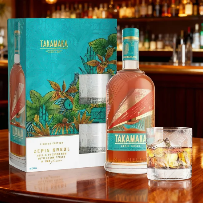 Tip na dárek: Chcete lahvinkou obdarovat někoho ze svých blízkých? Pak zvolte Rum Zepis Kreol Takamaka, který je balen v dárkovém boxu obsahujícím i 2 rumové sklenky.