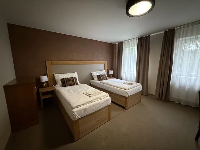 Zabydlíte se v prakticky zařízeném dvoulůžkovém pokoji s manželskou postelí nebo oddělenými lůžky a přistýlkou. K dispozici máte také televizi a bezplatné připojení na Wi‑Fi. Vlastní koupelna je vybavena sprchovým koutem.