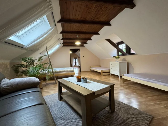 Vaším malým královstvím se stane jeden z moderně zařízených apartmánů až pro 8 nocležníků. Jejich součástí je vlastní koupelna se sprchovým koutem, toaletou a ručníky. Samozřejmostí je i povlečení, žehlička a Wi‑Fi připojení zdarma.