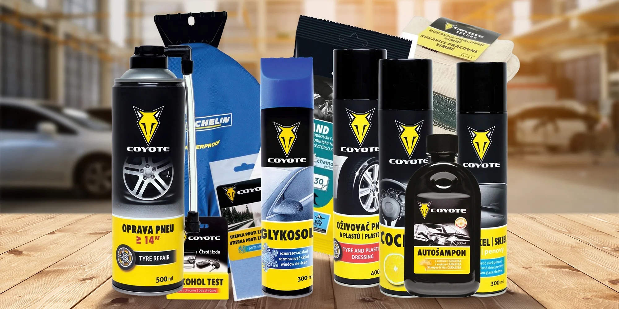 Zimní balíčky autokosmetiky Coyote na čištění interiéru i exteriéru auta