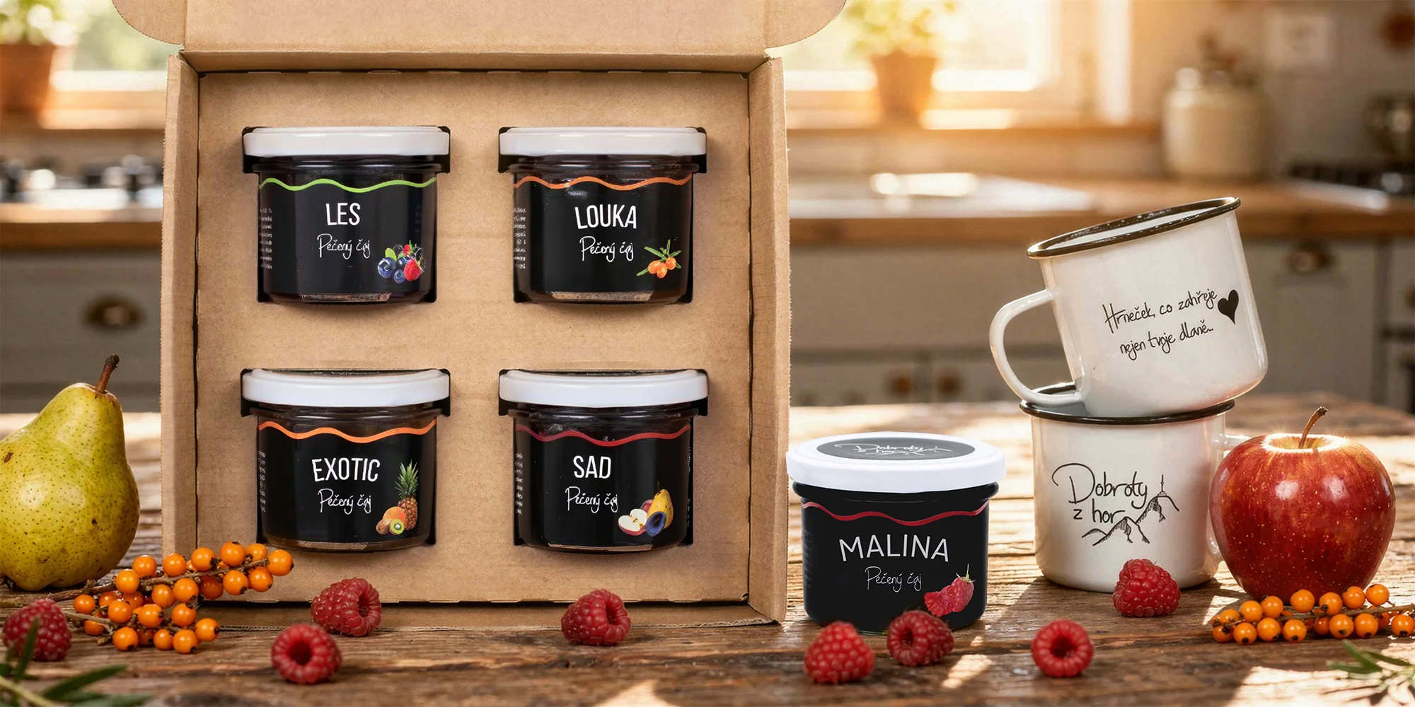 Tyhle sklenice, které jsou od dna až po víko naplněné jednodruhovým ovocem i směsmi, pro vás nachystal český rodinný podnik ze Šumperka – Dobroty z hor. Ochutnat můžete klasiky, jako je lesní směs, borůvka a malina nebo švestka, sáhnout po exotické směsi s ananasem, kiwi, pomerančem a mangem, přenést se na babiččinu zahrádku díky angreštovému čaji nebo vyzkoušet čaj inspirovaný loukou, ve kterém rozeznáte chuť rakytníku, jeřabiny a šípku.