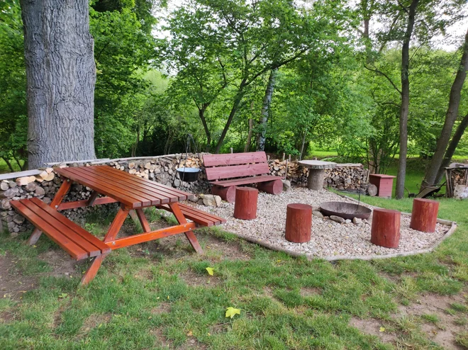 Venku najdete také stylové zázemí pro odpočinek, kde budete mít připravené ohniště s posezením pod staletým dubem, gril, kotlík a samozřejmě i dřevo. Relaxovat můžete také na malém molu nebo v houpací síti mezi stromy.